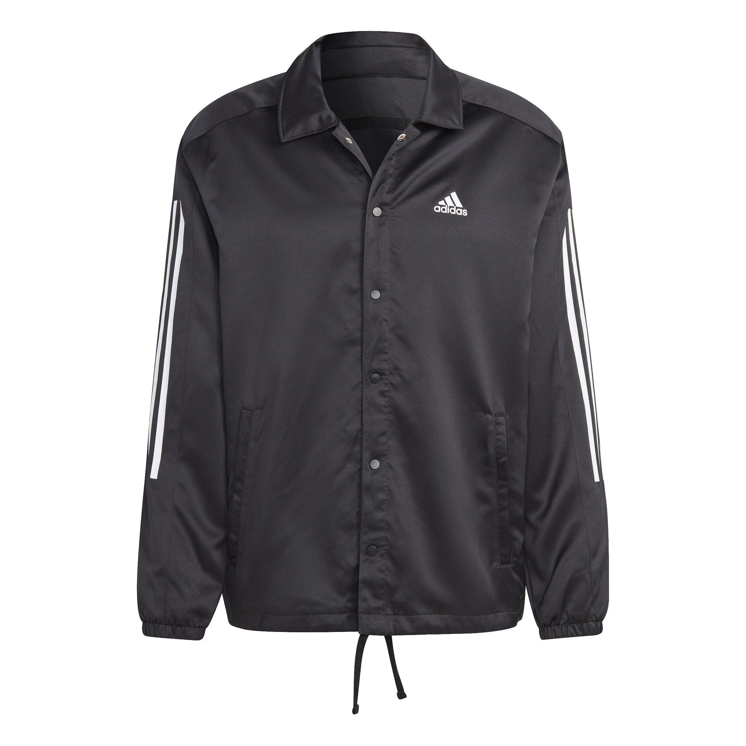 La giacca da allenatore Adidas a maniche lunghe presenta un design a blocchi elegante con 3-stripes lungo le maniche per un immediato riconoscimento del marchio. Realizzata in un tessuto morbido con colletto a punta e chiusura a bottoni, questo pezzo a vestibilità regolare bilancia l'eredità sportiva con uno stile casual.