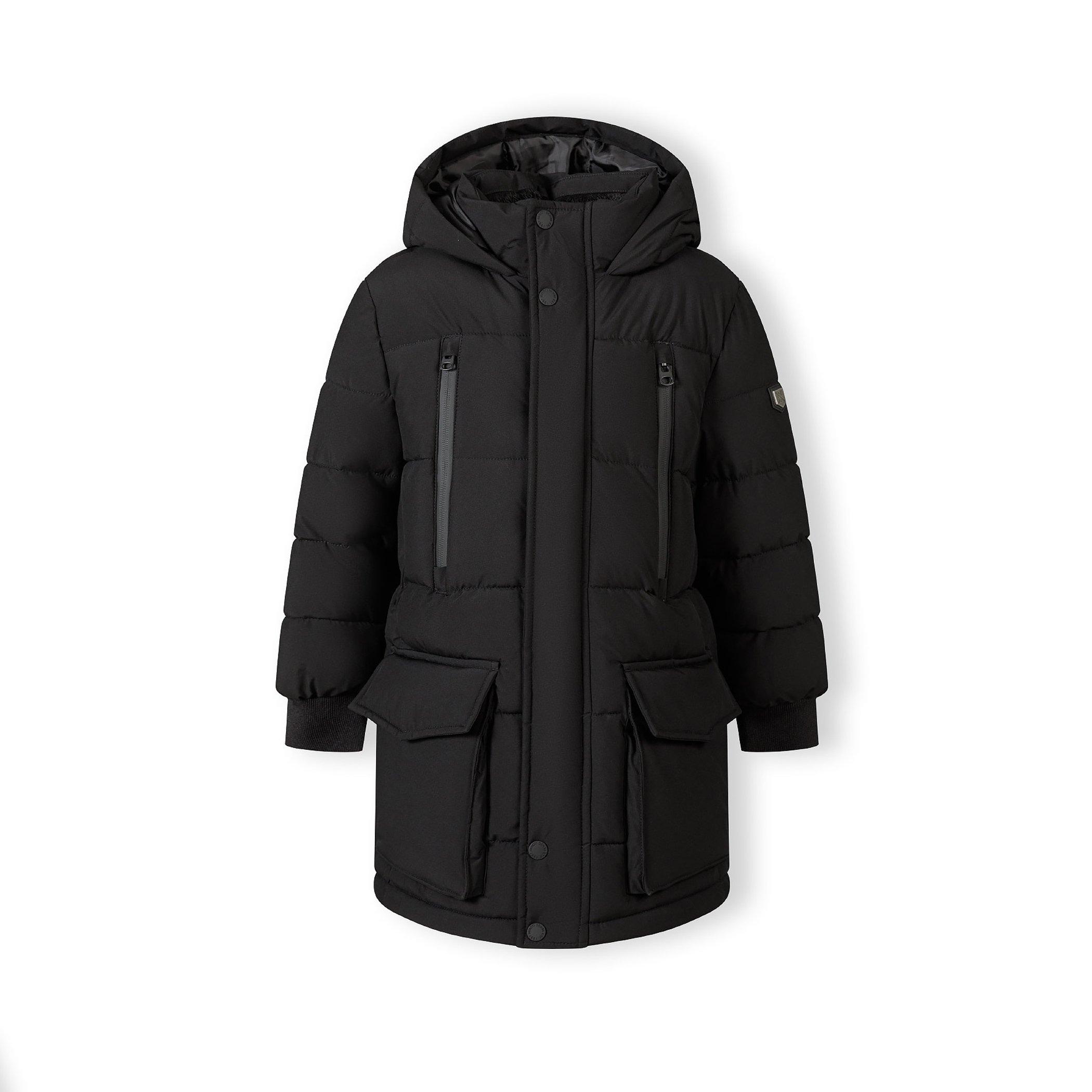 Minoti Boys long jacket with fleece lining and zip pockets black