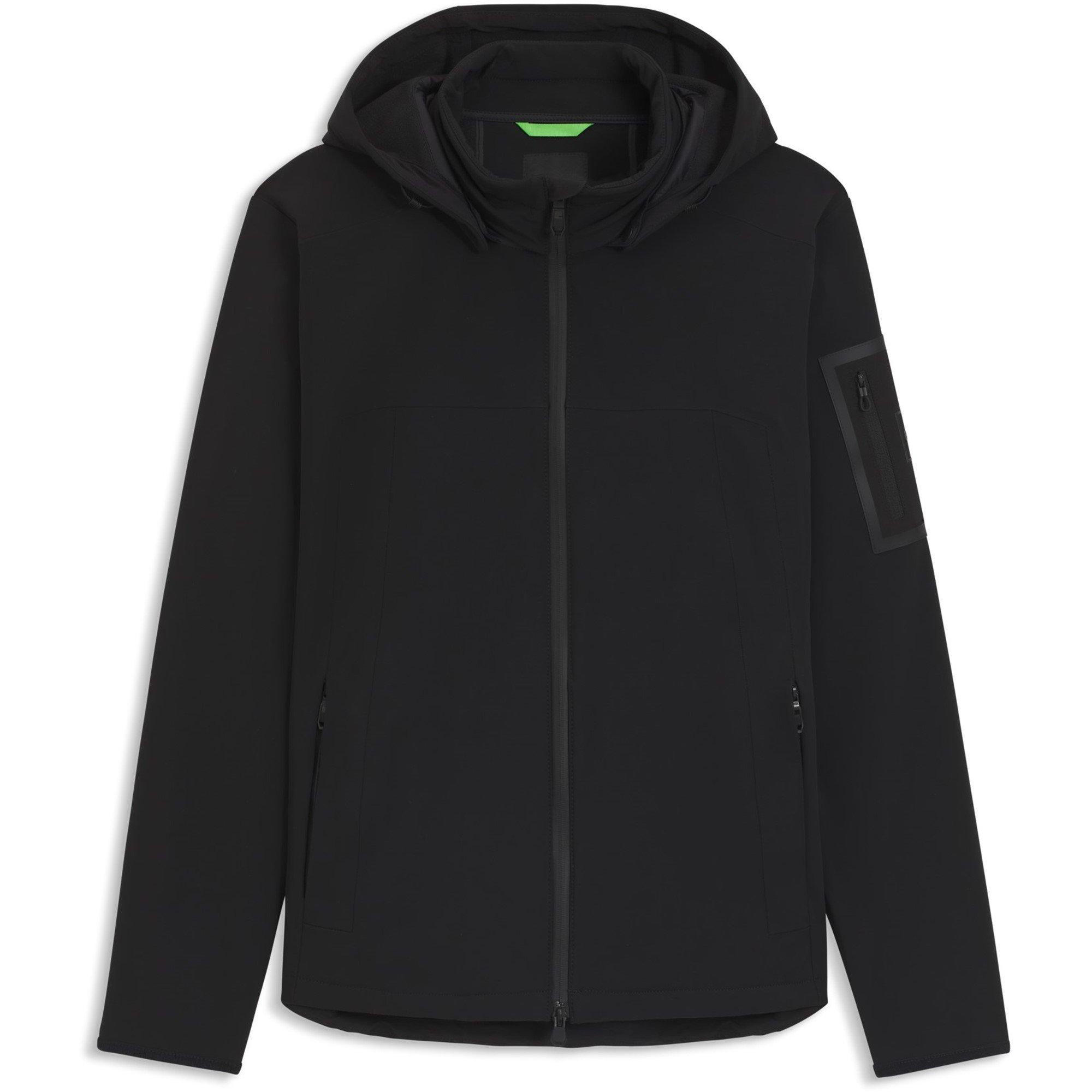 La giacca softshell con cappuccio e maniche lunghe BOSS unisce prestazioni e stile urbano. Caratterizzata da un collo a imbuto protettivo e cappuccio regolabile, questo design a vestibilità regolare offre protezione adattabile dalle intemperie con chiusura a zip sicura e molteplici tasche per riporre gli oggetti essenziali quotidiani, rendendola ideale sia per l'abbigliamento casual che per quello attivo.
