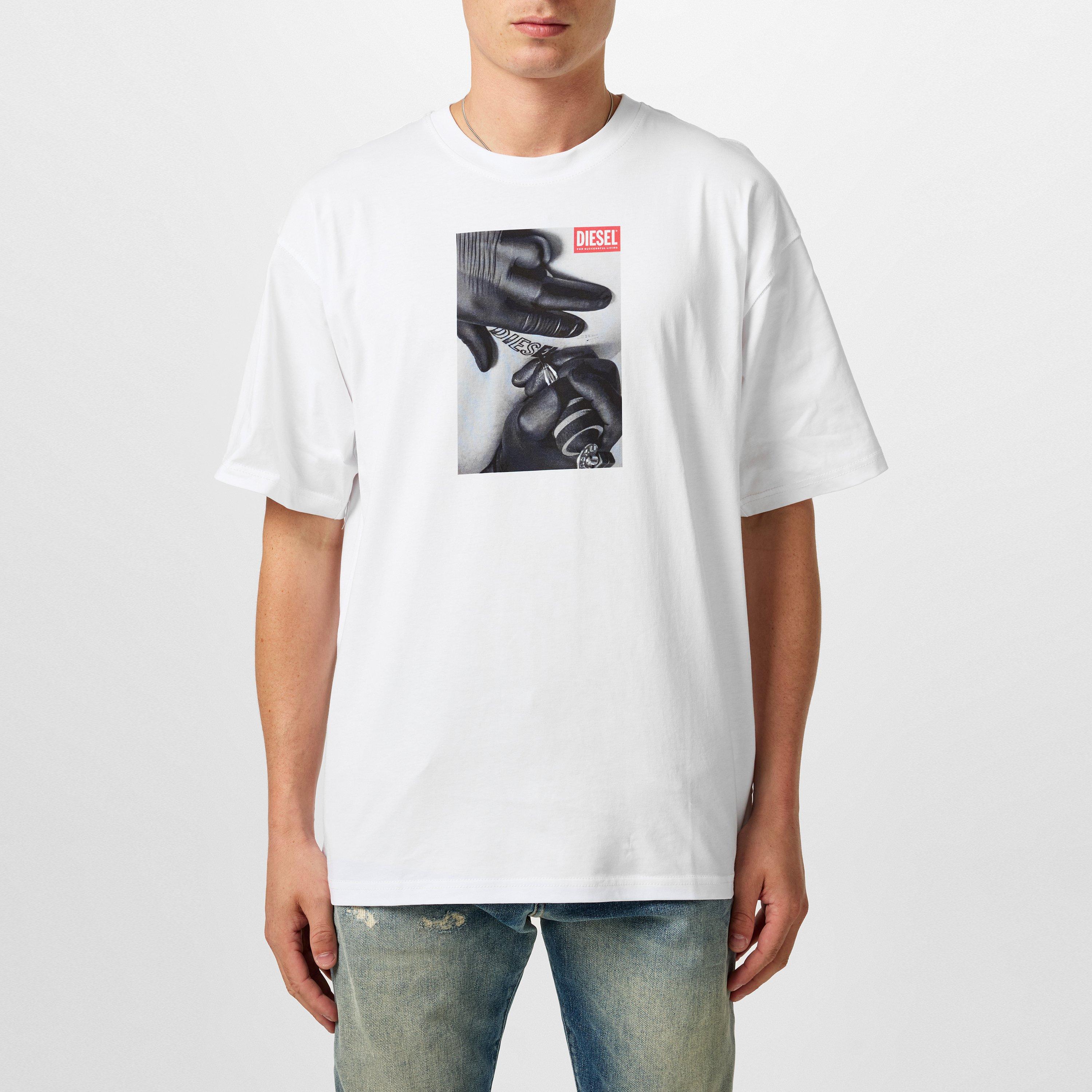 La T-shirt Diesel Boxt Graphic Regular Fit offre uno stile streetwear audace e con carattere. Questa maglietta presenta una forma rilassata con dettagli grafici accattivanti, mantenendo al contempo il comfort quotidiano grazie al suo classico colletto a girocollo.