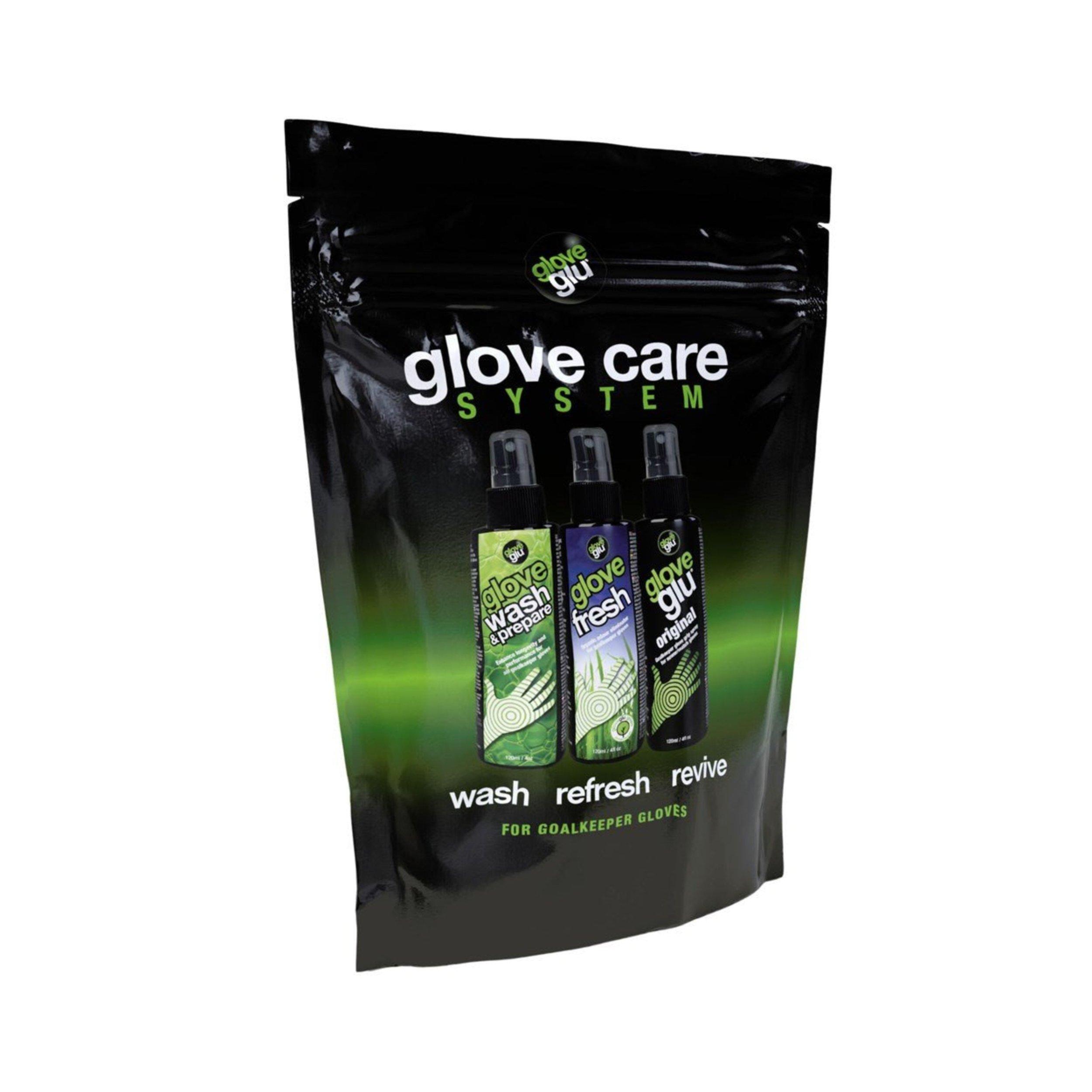 Premium Wash & Prepare - Formulato scientificamente per migliorare le prestazioni e la durata del palmo del tuo guanto. glovefresh - Mantiene i tuoi guanti freschi e privi di odori. gloveglu Original - Eleva la presa del guanto con la nostra formula Originale, perfetta da applicare prima o durante le partite per migliorare la presa.