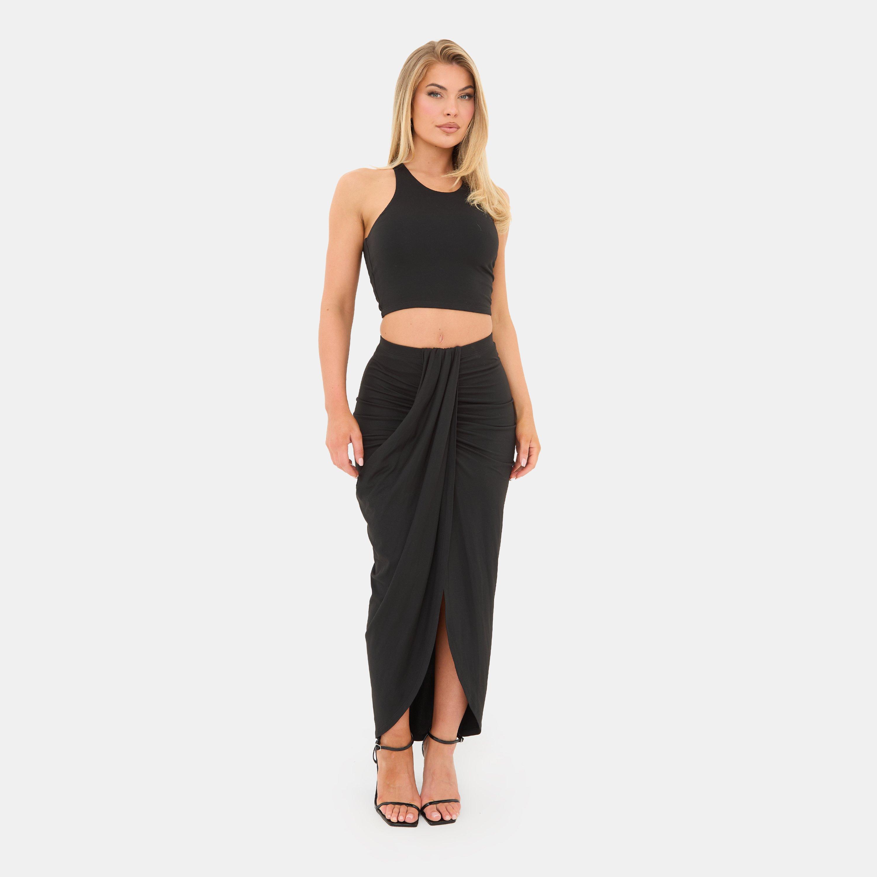 Fluida e senza sforzo femminile, questa gonna maxi con nodo frontale è progettata per fare una dichiarazione elegante. Realizzata in un tessuto leggero e fluido, presenta una vita alta che valorizza la figura con un elegante dettaglio a nodo che aggiunge texture e interesse visivo.