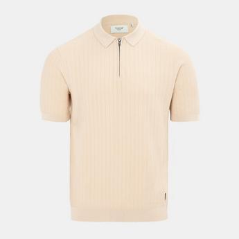 1/4 Short Sleeve Ribbed Knit Button Polo Men