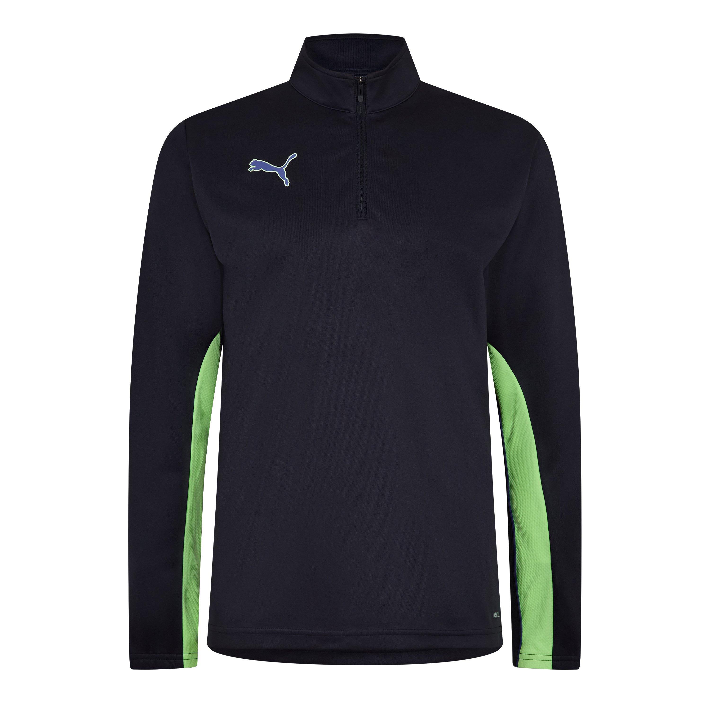 Una delle caratteristiche più sorprendenti di questa maglia da allenamento è la tecnologia dryCELL di firma Puma. Utilizza proprietà di assorbimento dell'umidità a base biologica per mantenerti asciutto, anche durante le sessioni di allenamento intense. Il design innovativo Quarter Zip non solo aggiunge stile ma incornicia il collo a imbuto, garantendo una vestibilità aderente che migliora le prestazioni. Permettendoti di entrare in campo o in sessione di allenamento con fiducia, basta aprire la zip per ulteriore libertà di movimento.
