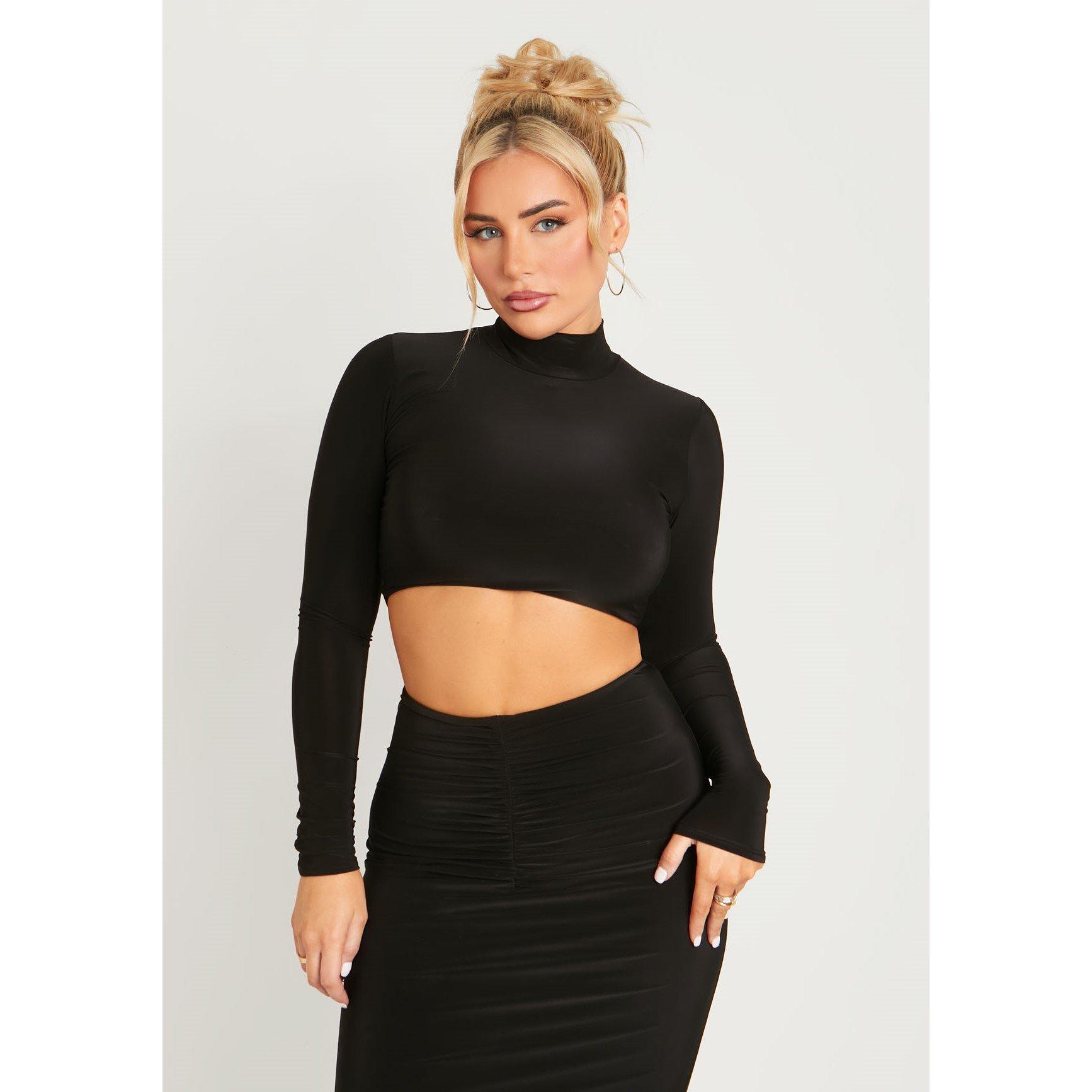 High Neck Long Sleeve Crop Top