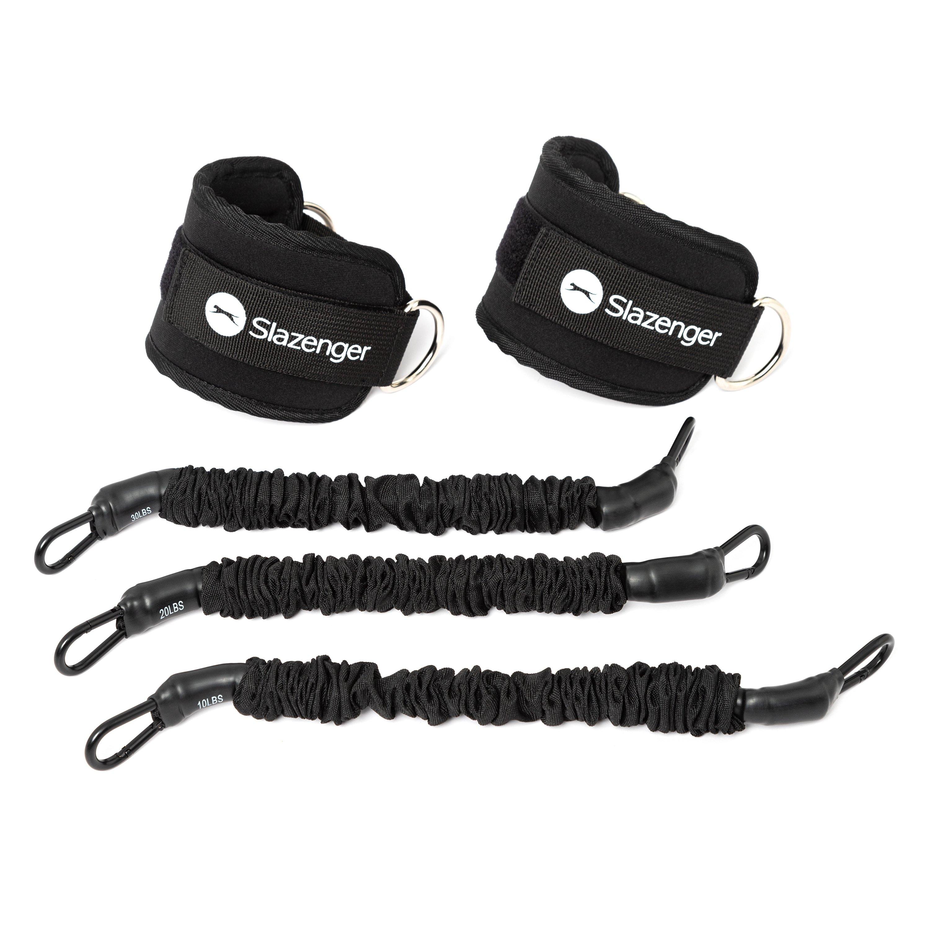 Questo set di Bande di Resistenza per Caviglie include 2 fasce per caviglie e 3 bande di resistenza. Le 3 bande di resistenza variano da 10 a 30 LBS, permettendoti di creare 6 diverse combinazioni di resistenza. L'imbottitura in neoprene spesso di alta qualità garantisce la vestibilità più confortevole durante l'allenamento delle gambe e dei fianchi, mentre il tubo in lattice avvolto in resistenti maniche previene lo sfilacciamento e lo strappo. Progettato per tutti i livelli di fitness, puoi facilmente variare i tuoi allenamenti per tonificare i glutei e rafforzare i muscoli. Perfetto per gli allenamenti a casa, in palestra o in viaggio, queste leggere e convenienti bande di resistenza per caviglie offrono una soluzione di allenamento comoda per qualsiasi appassionato di fitness in movimento. Resta energizzato e attivo in qualsiasi momento e ovunque. ALLENAMENTI VERSATILI COMFORT E SICUREZZA LEGGERO E CONVENIENTE Materiale: Contenuto della fibra della fascia per caviglia: Neoprene, Poliestere Contenuto di resistenza: Lattice, Poliestere