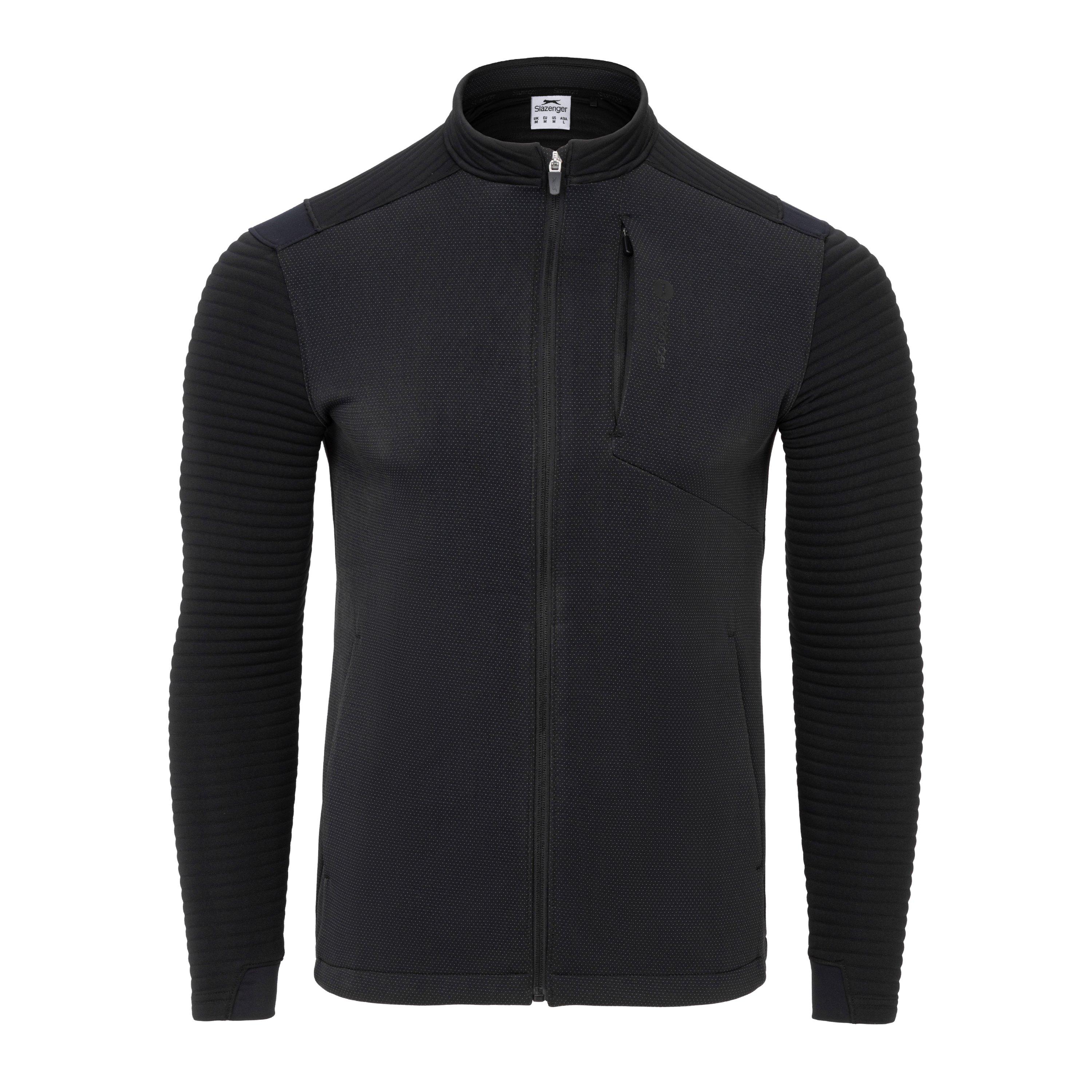 Migliora le tue prestazioni sul campo con la giacca da golf performance a maniche lunghe traspirante e ad asciugatura rapida Slazenger. Questo abbigliamento da golf presenta un design traspirante che ti mantiene comodo durante il tuo turno, mentre il colletto rialzato e il design a tre tasche offrono funzionalità pratica per riporre tee, schede punteggio ed essenziali.