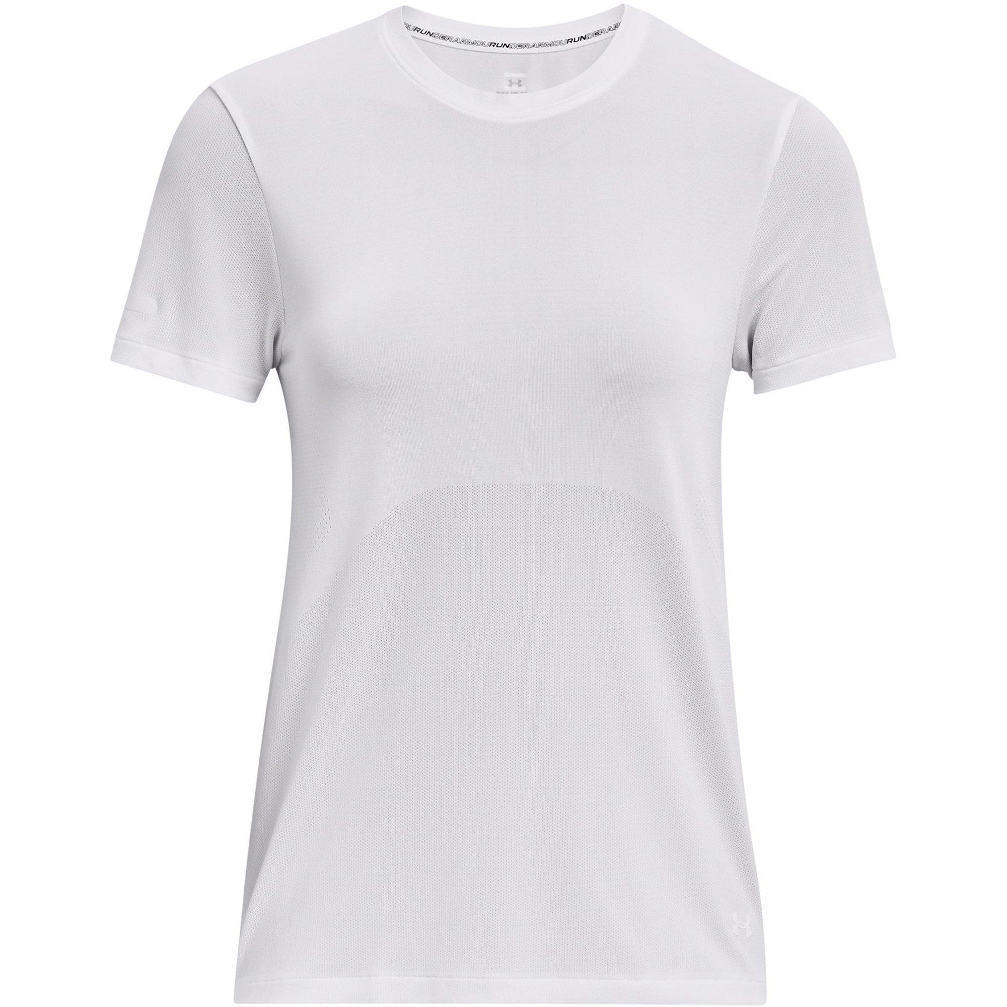 La maglietta atletica a maniche corte Seamless Stride di Under Armour unisce un design minimalista a caratteristiche di prestazione per la corsa. Questo capo di abbigliamento attivo presenta un design elegante che offre comfort senza cuciture mentre il tessuto sportivo traspirante mantiene una freschezza confortevole durante il movimento.